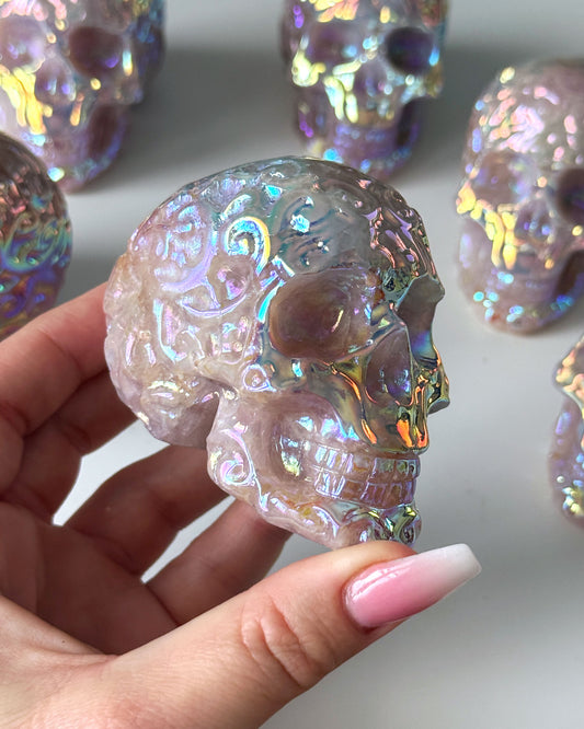 Aura Rose Quartz Skull