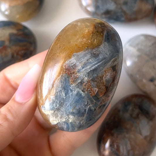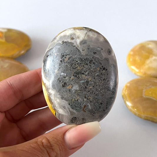 Yellow Gray Bumble Bee Jasper Palm Stone