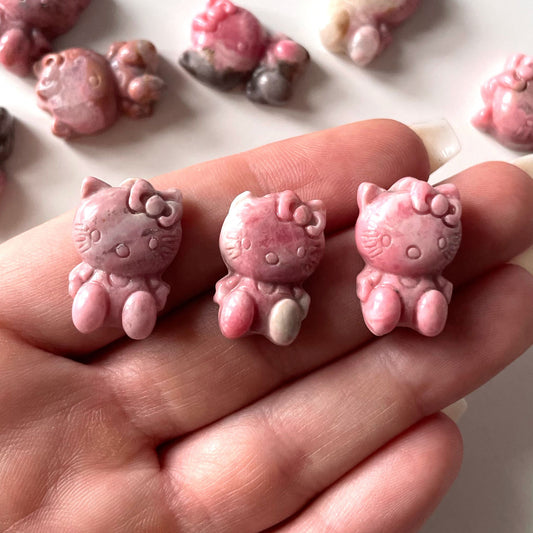 Rhodonite Kitty Carving