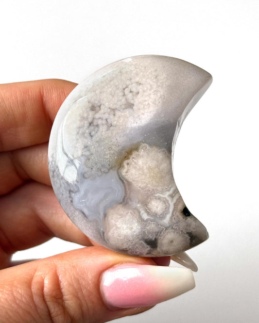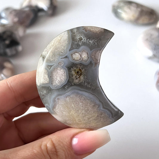 Moss Agate Moon Carving