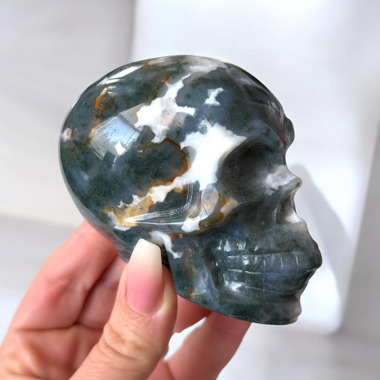 Sold outMoss Agate Skull Carving