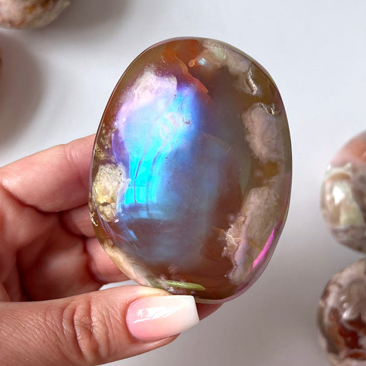 Sold outAura Flower Agate Large Palm Stone