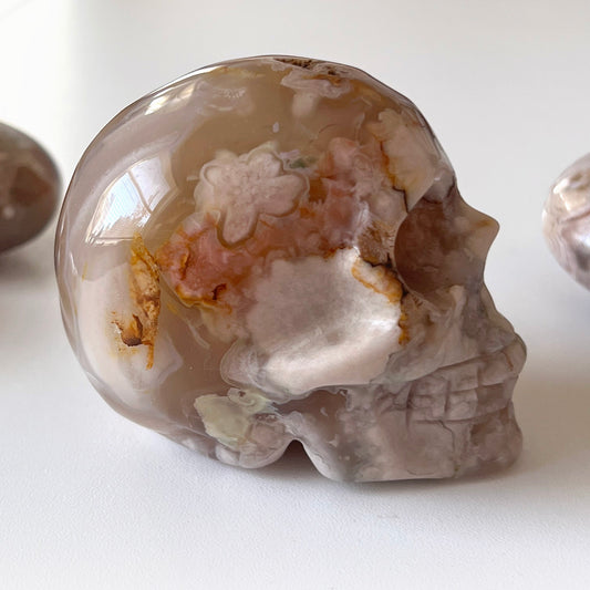 Sold outFlower Agate Skull Carving