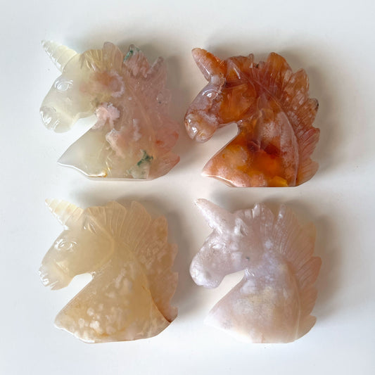 Flower Agate Unicorn Carving