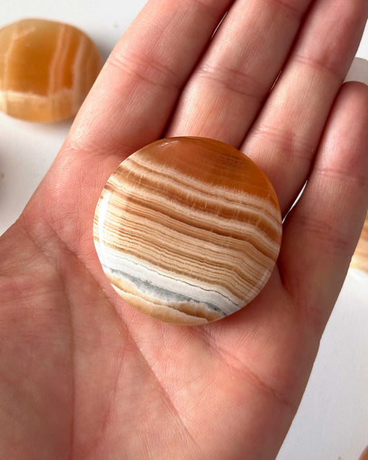 Banded Honey Calcite Round Palm Stone