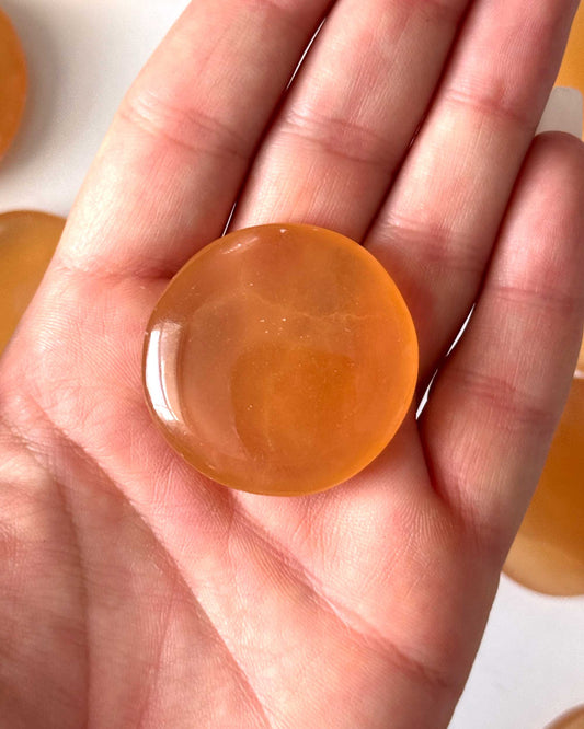 Honey Calcite Round Palm Stone