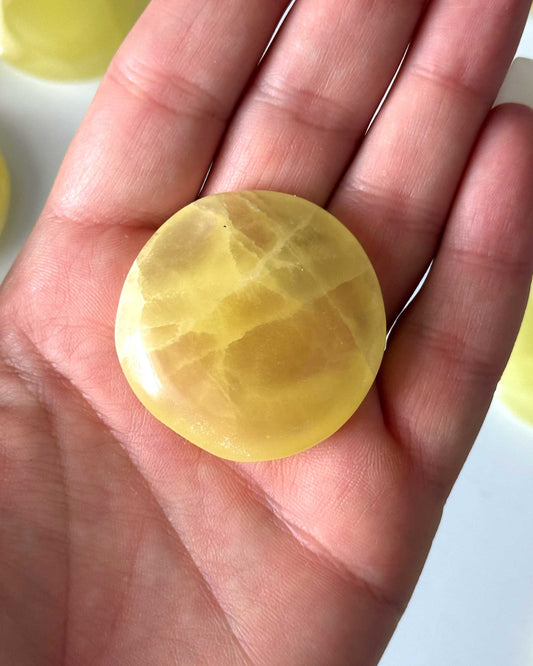 Lemon Calcite Round Palm Stone