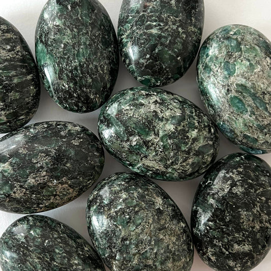 Palm stones fit comfortably in the palm of your hand and are used for meditation or energy healing. Their smooth round shape allows for a calming sensory experience, perfect for mindfulness practices.