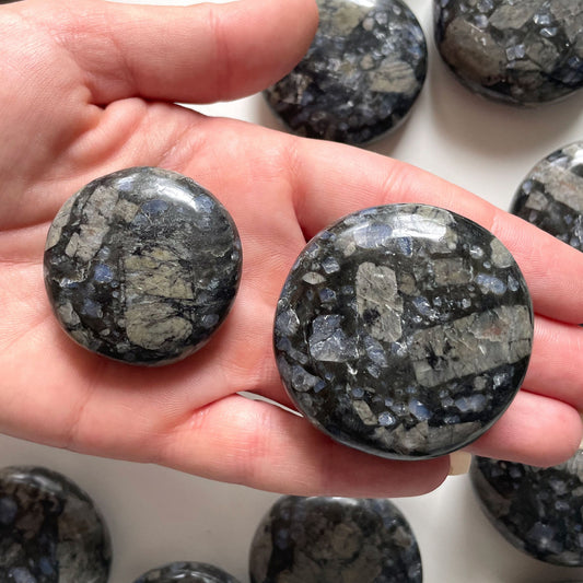 Palm stones fit comfortably in the palm of your hand and are used for meditation or energy healing. Their smooth round shape allows for a calming sensory experience, perfect for mindfulness practices.