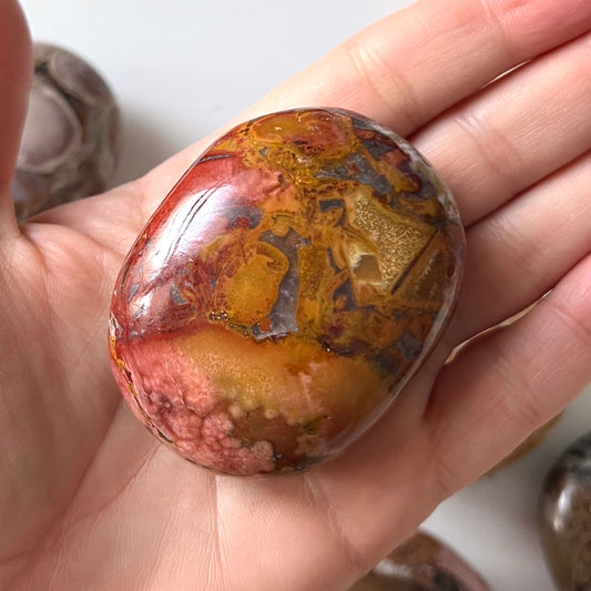 Palm stones fit comfortably in the palm of your hand and are used for meditation or energy healing. Their smooth round shape allows for a calming sensory experience, perfect for mindfulness practices.
