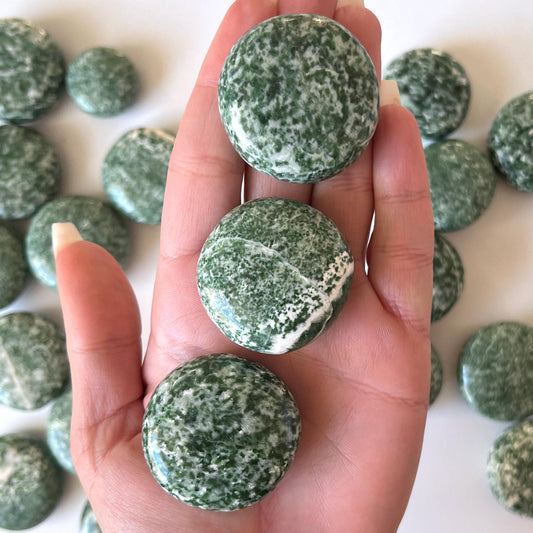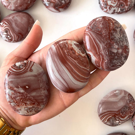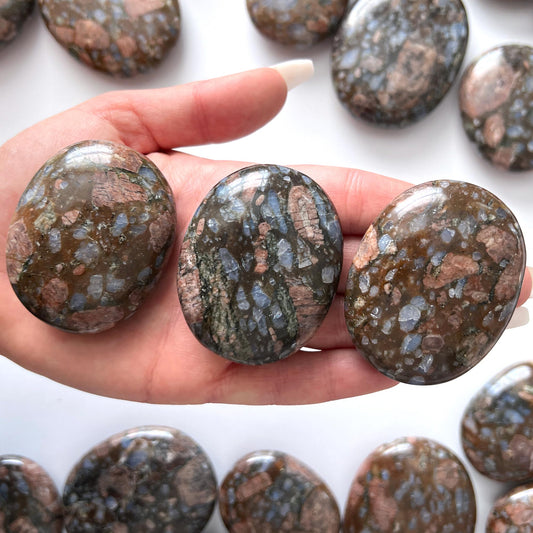 Palm stones fit comfortably in the palm of your hand and are used for meditation or energy healing. Their smooth round shape allows for a calming sensory experience, perfect for mindfulness practices.
