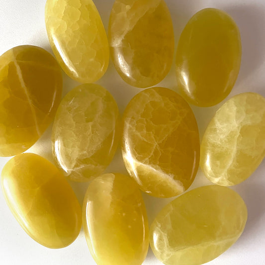 Sold outLemon Calcite Palm Stone