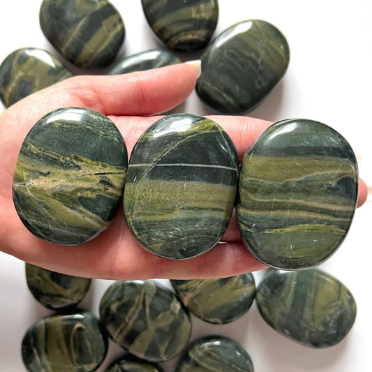 Palm stones fit comfortably in the palm of your hand and are used for meditation or energy healing. Their smooth round shape allows for a calming sensory experience, perfect for mindfulness practices.