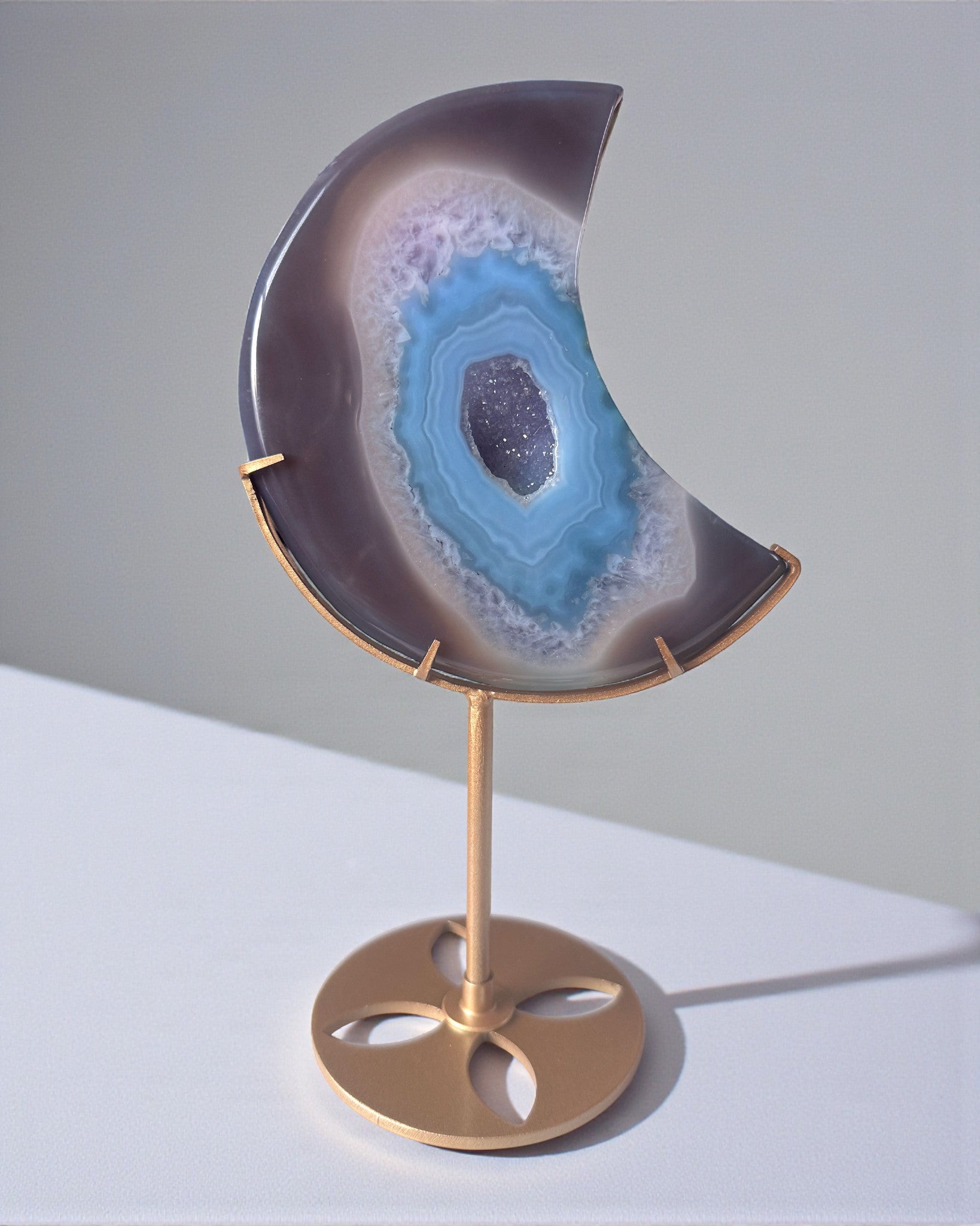 Agate Druzy Crescent Moon on Stand