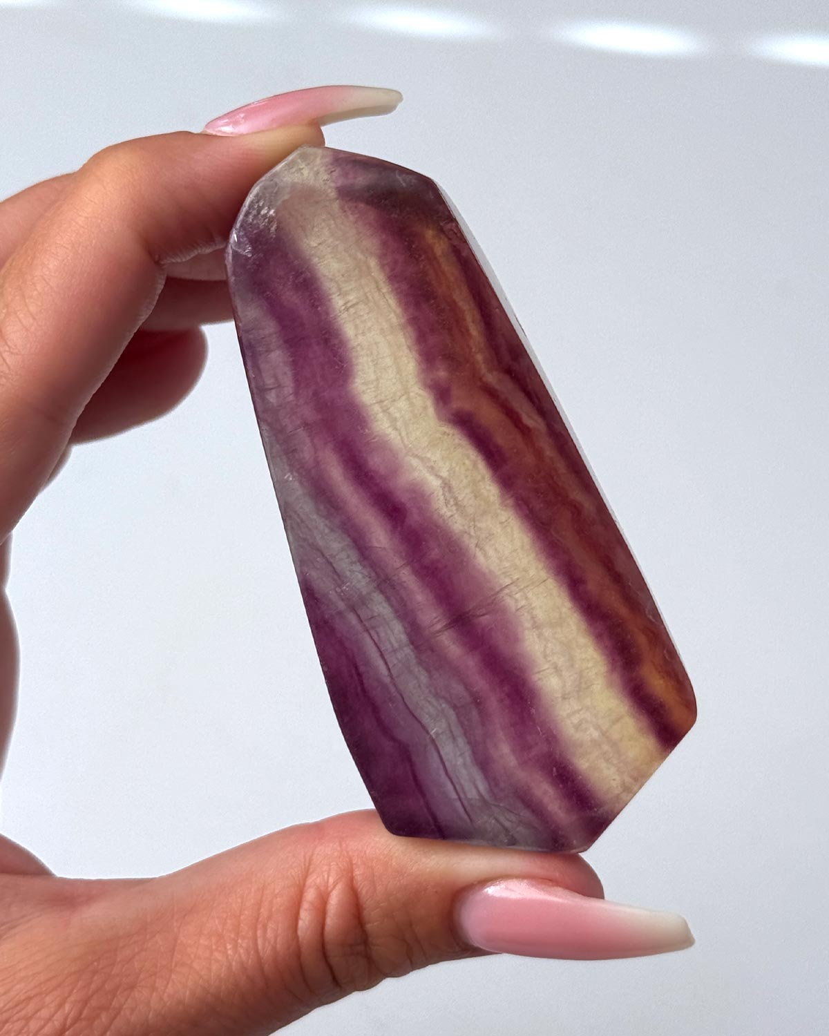 Candy Fluorite is a vibrant, uplifting stone that radiates positivity and focus. Its swirling bands of bright colors encourage clarity of thought while sparking joy and creativity. This crystal supports decision-making, helps clear mental fog, and inspires confidence in following your true path.