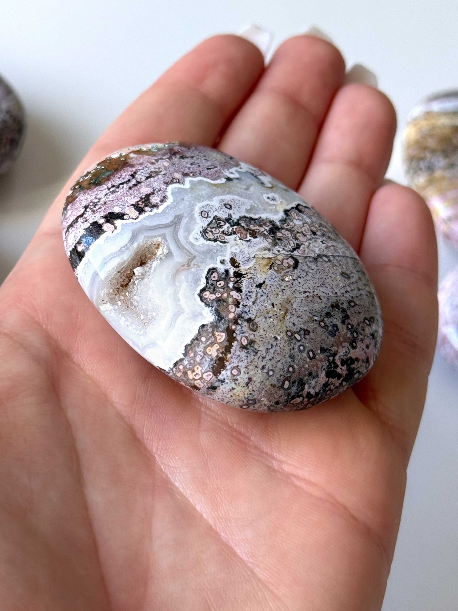 Sea Jasper carries a soothing, rhythmic energy reminiscent of the ocean’s natural ebb and flow. This stone encourages emotional resilience, patience, and a deep sense of inner calm, helping you stay steady through life’s changing tides. Often associated with renewal and gentle grounding, Sea Jasper supports mindfulness and emotional clarity while fostering a peaceful connection to the present moment. Ideal for those seeking tranquility, emotional restoration, and a calming energetic anchor.