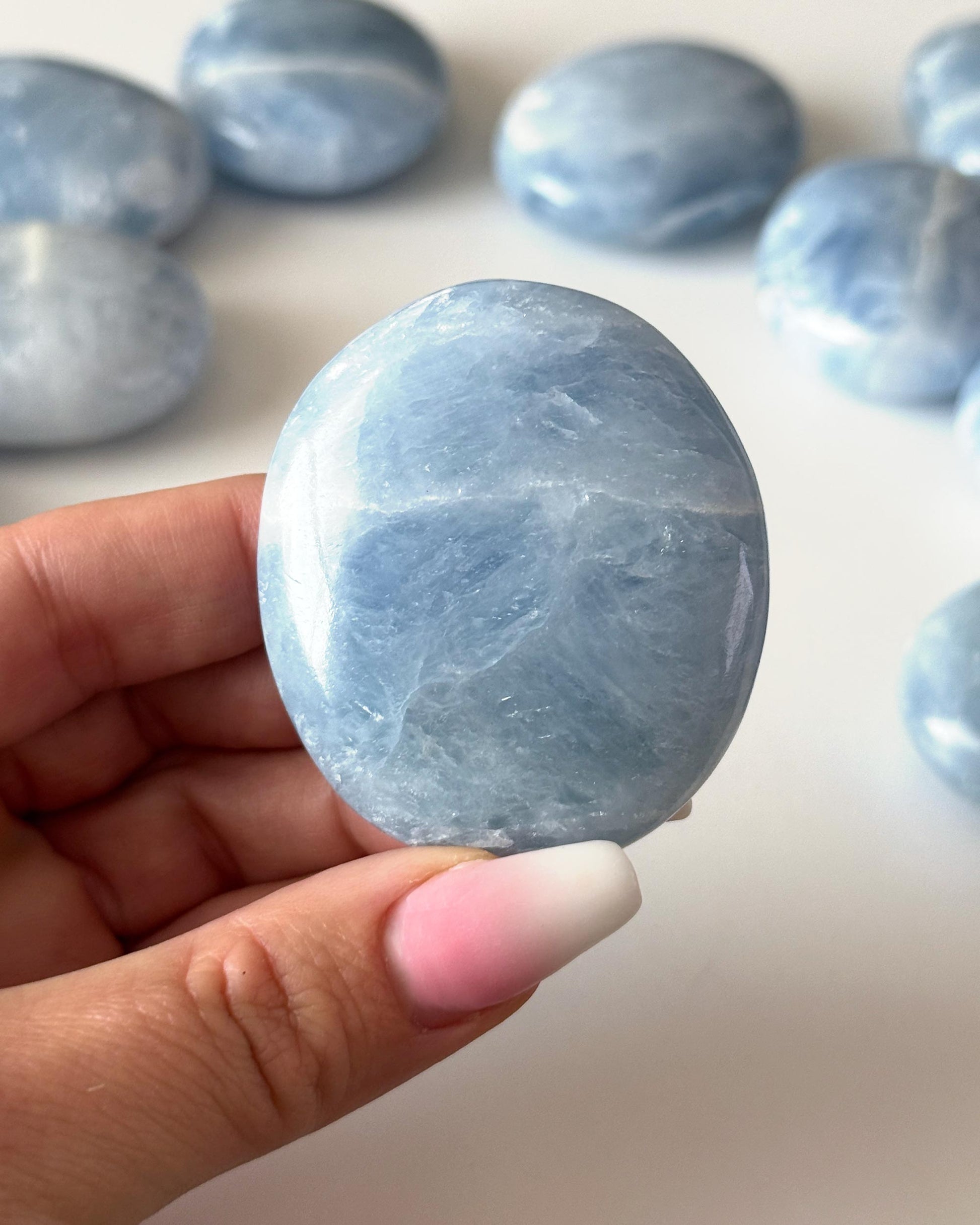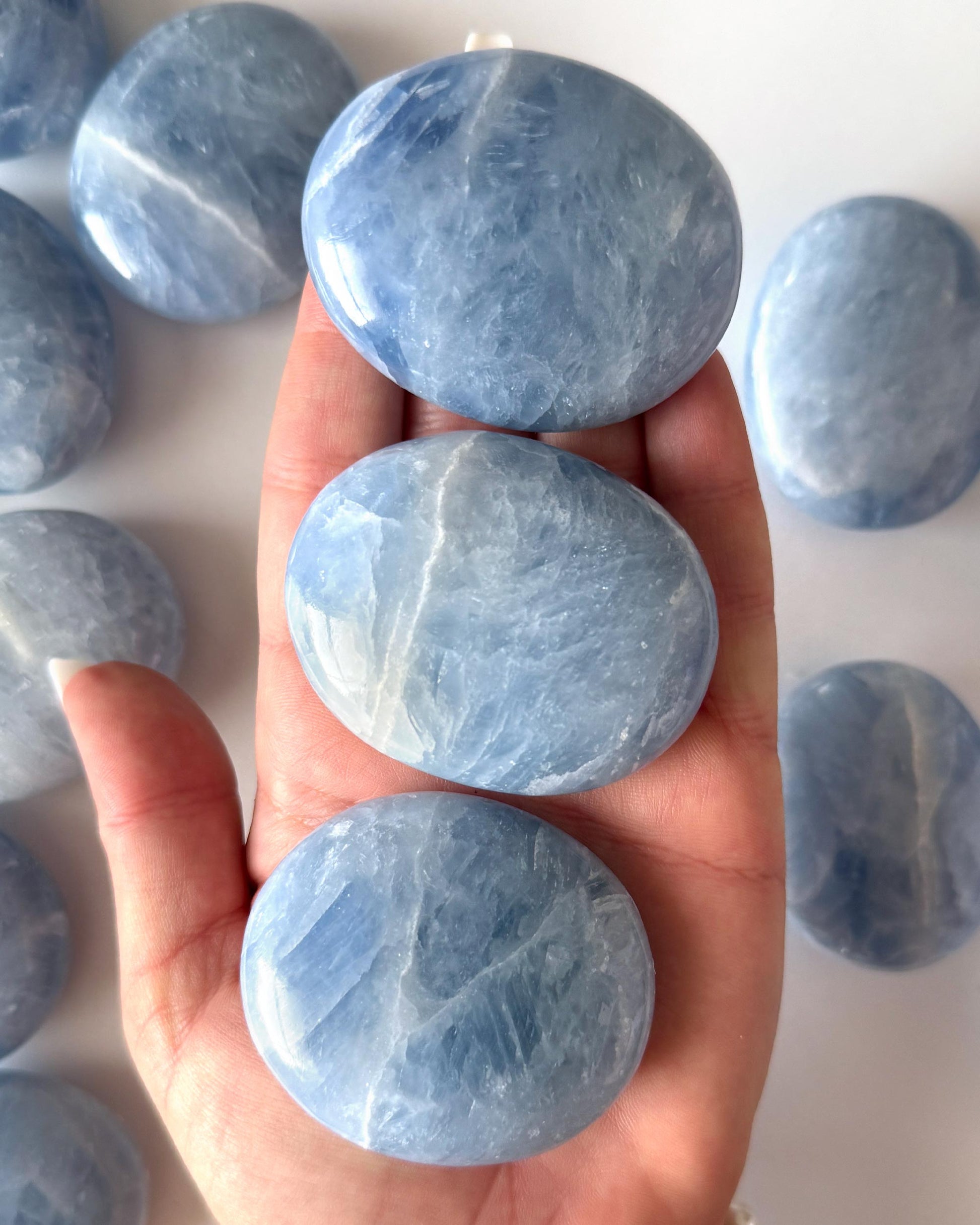 Blue Calcite is a relaxing stone that eases stress and anxiety. This crystal is ideal for times of deep healing and recuperation. It aids in psychic development by enhancing intuition and clairvoyant abilities. Blue Calcite encourages emotional release and helps one communicate ideas effectively.
