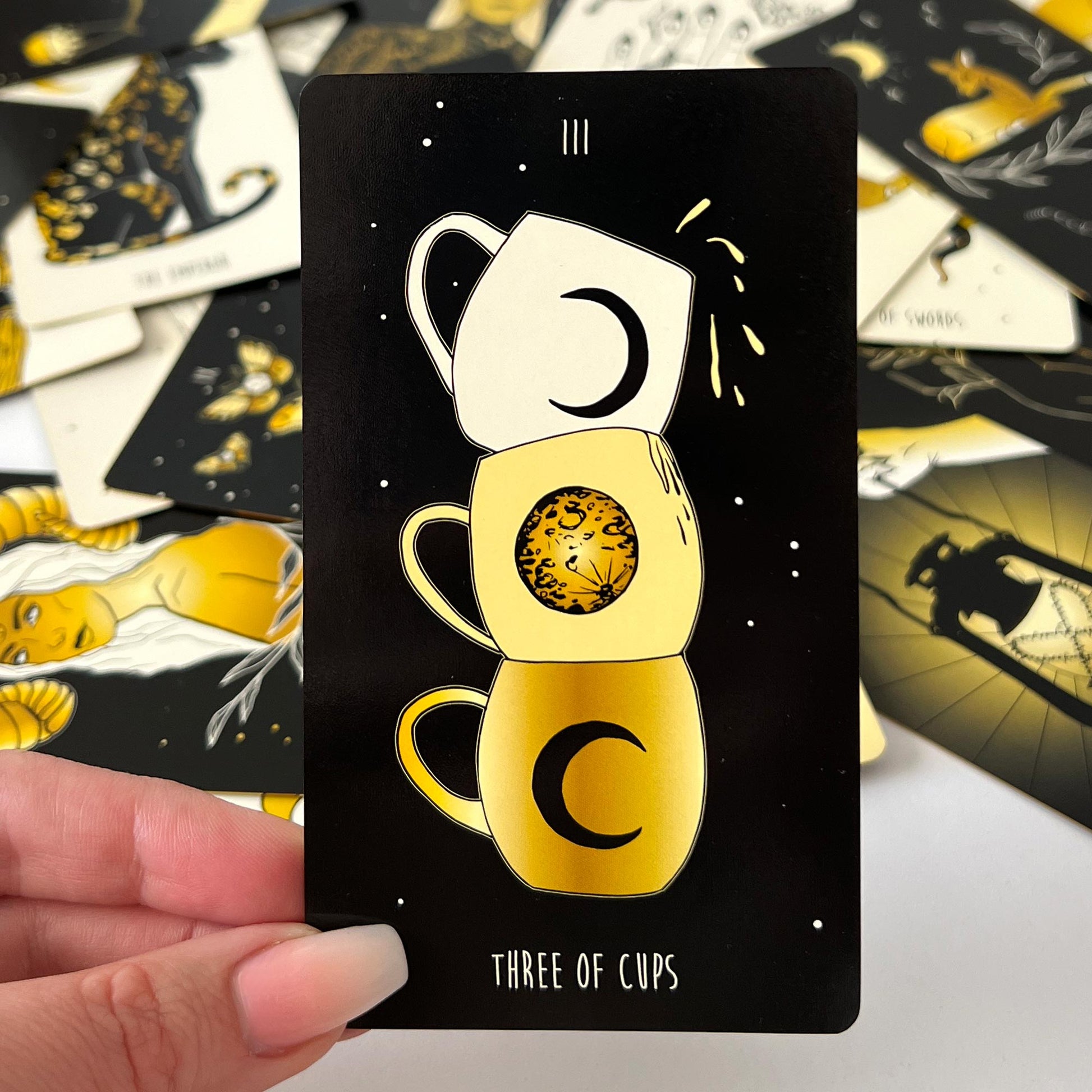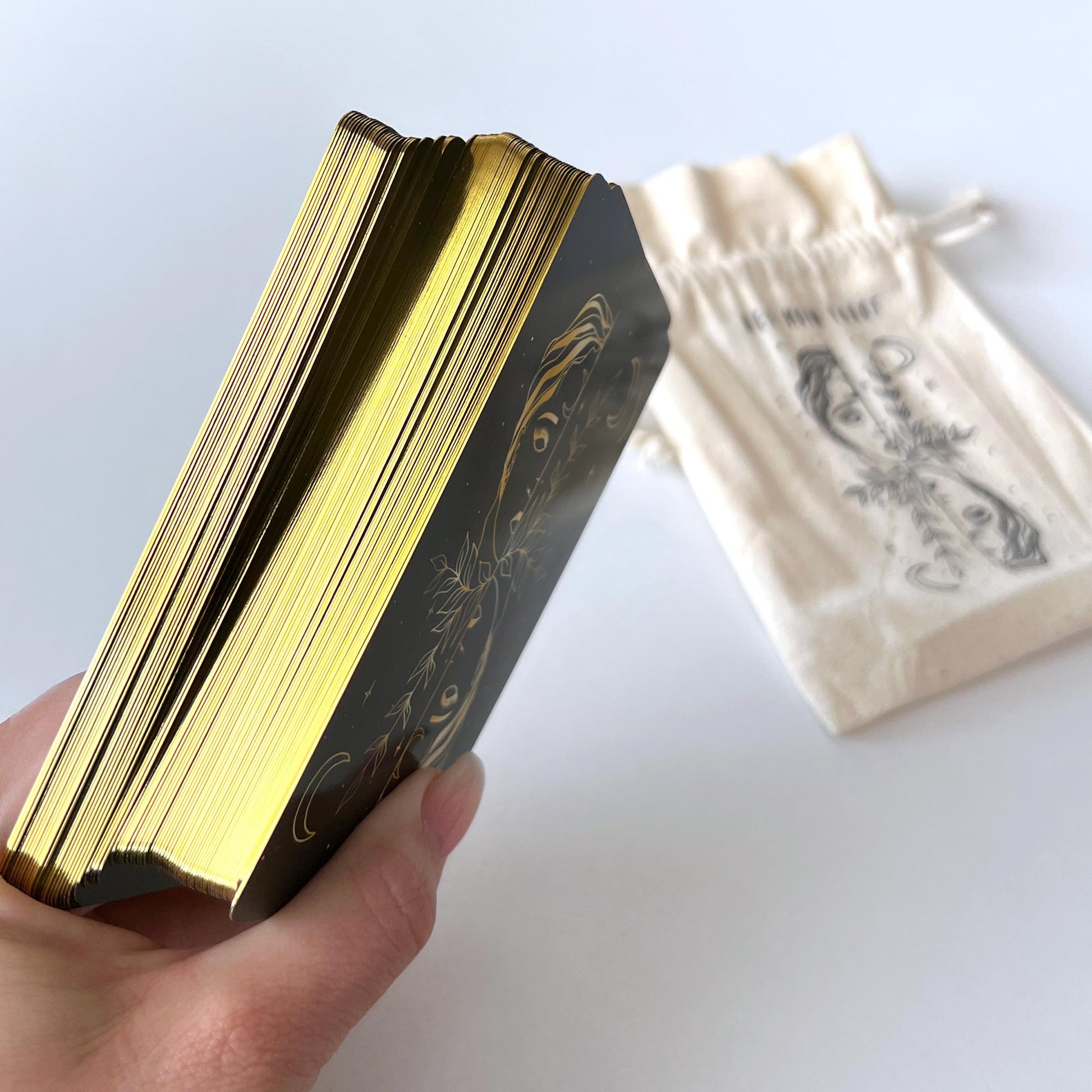 This deck includes 78 keepsake cards with gold gilt edges divided in 22 Major Arcana and 56 Minor Arcana.