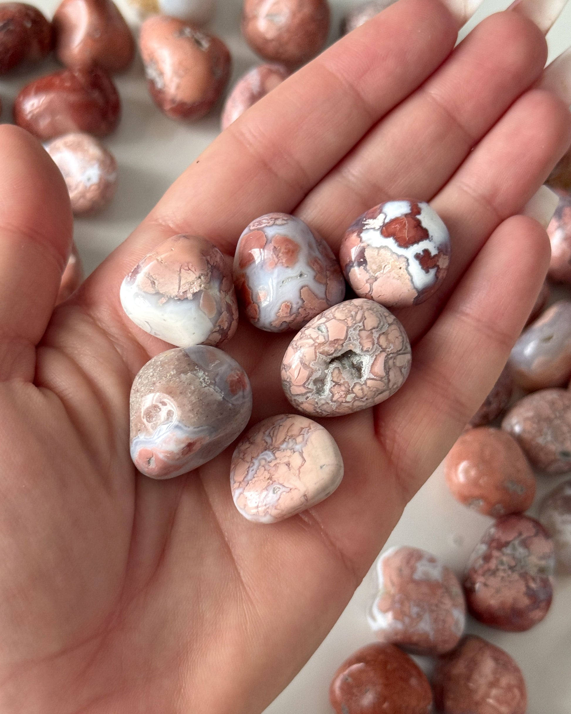 Pink Cotton Candy Agate radiates gentle, uplifting energy that soothes the heart and brightens the spirit. Its soft hues carry a nurturing vibration, offering comfort during emotional stress while encouraging joy, optimism, and a lighthearted approach to life. This stone inspires self-love and a renewed sense of harmony, making it a sweet companion for emotional healing.