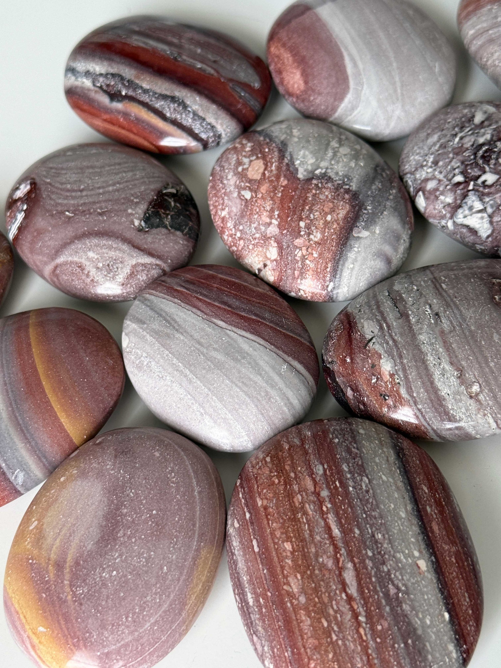 Rhyolite Wonderstone is a beautifully patterned volcanic stone formed from ancient lava flows, often displaying swirling layers of earthy reds, browns, creams, and golds. This stone carries an energizing yet grounding presence that supports personal growth and transformation while encouraging you to embrace new opportunities with confidence.