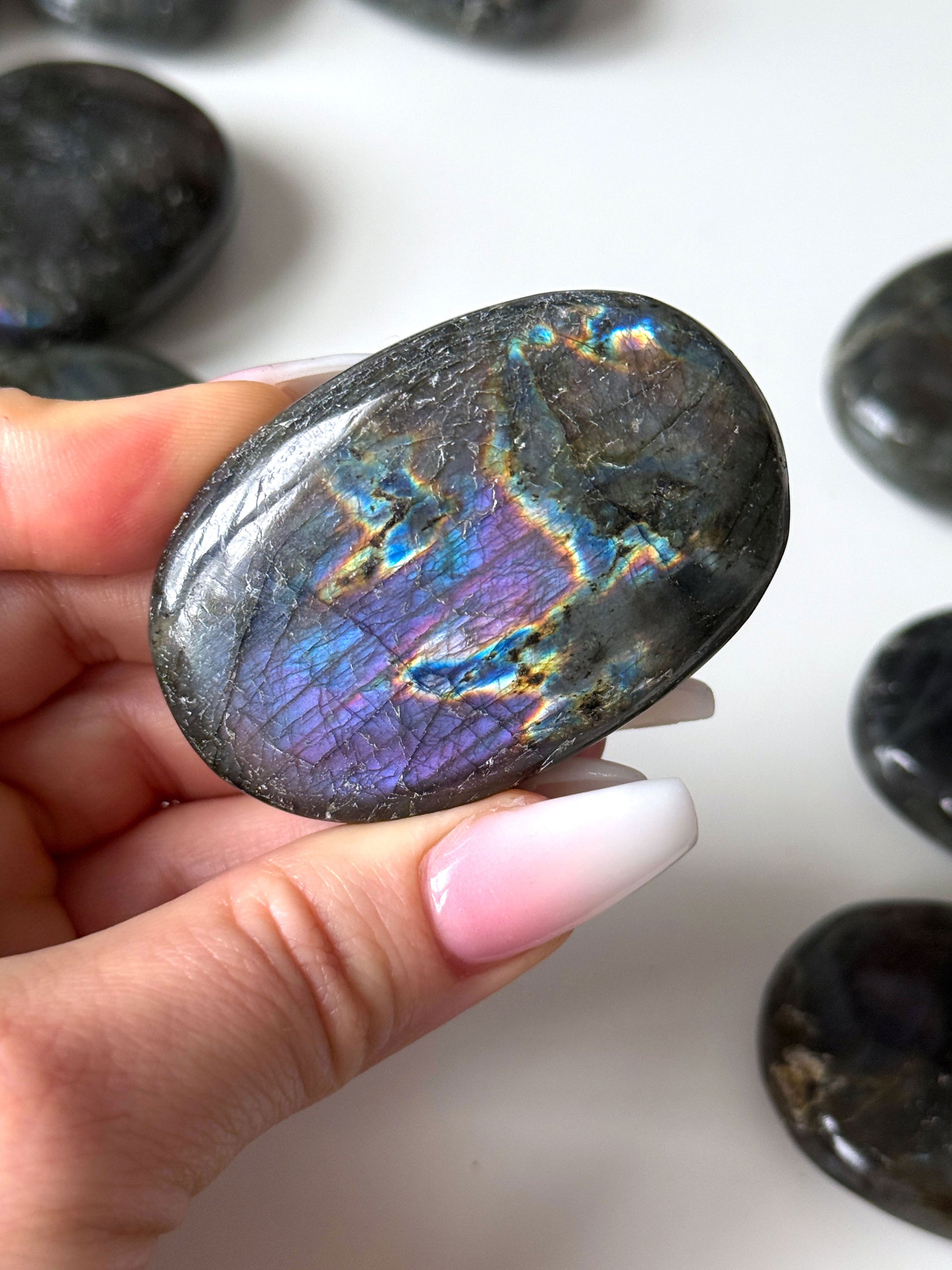 Dazzling with vibrant flashes of blue, green, gold, and even violet, Spectrolite Labradorite is a rare and highly prized variety known for its exceptional depth of color and full spectrum flash. It is considered more vibrant and energetically potent than traditional Labradorite, making it especially sought after by collectors and energy workers alike.