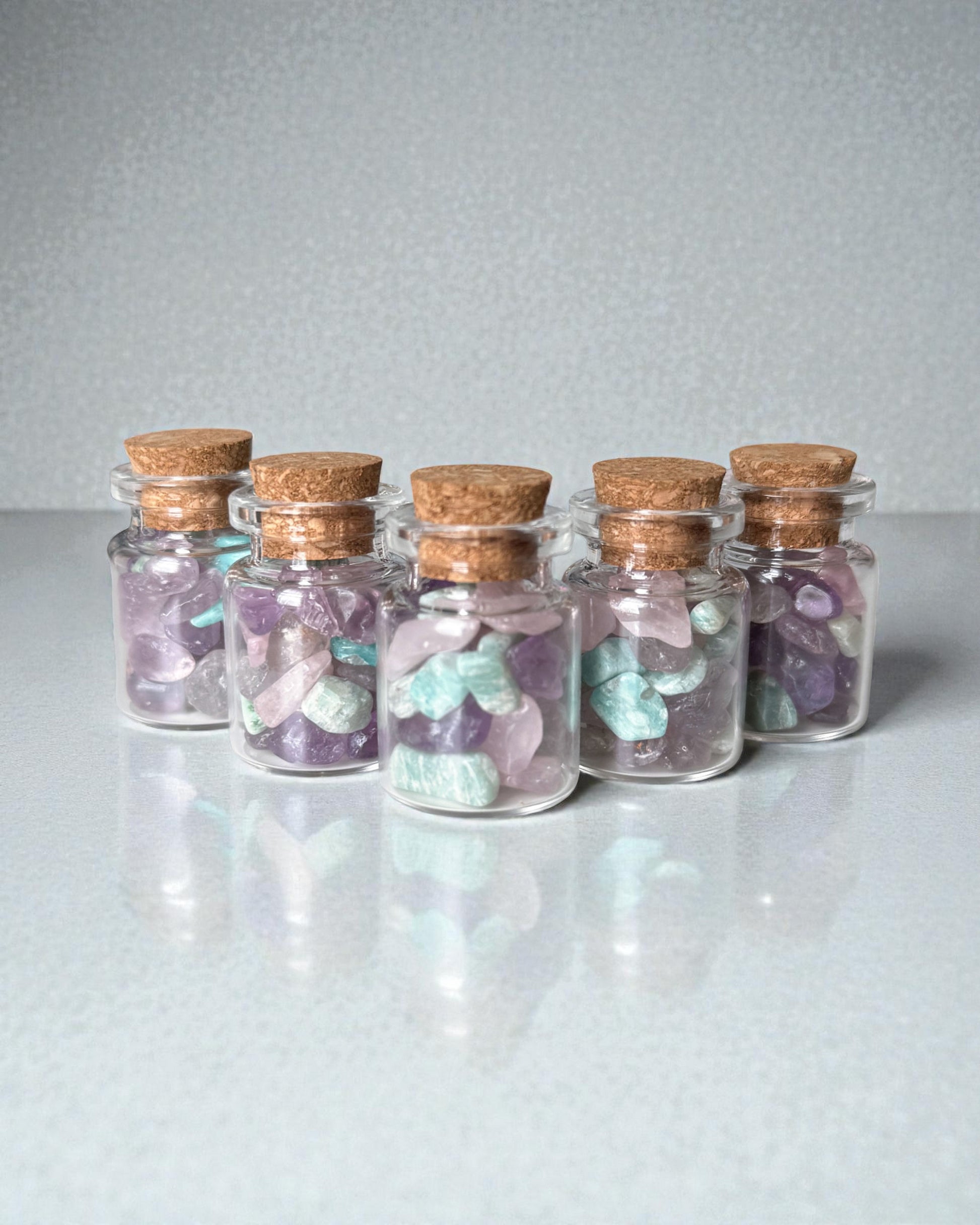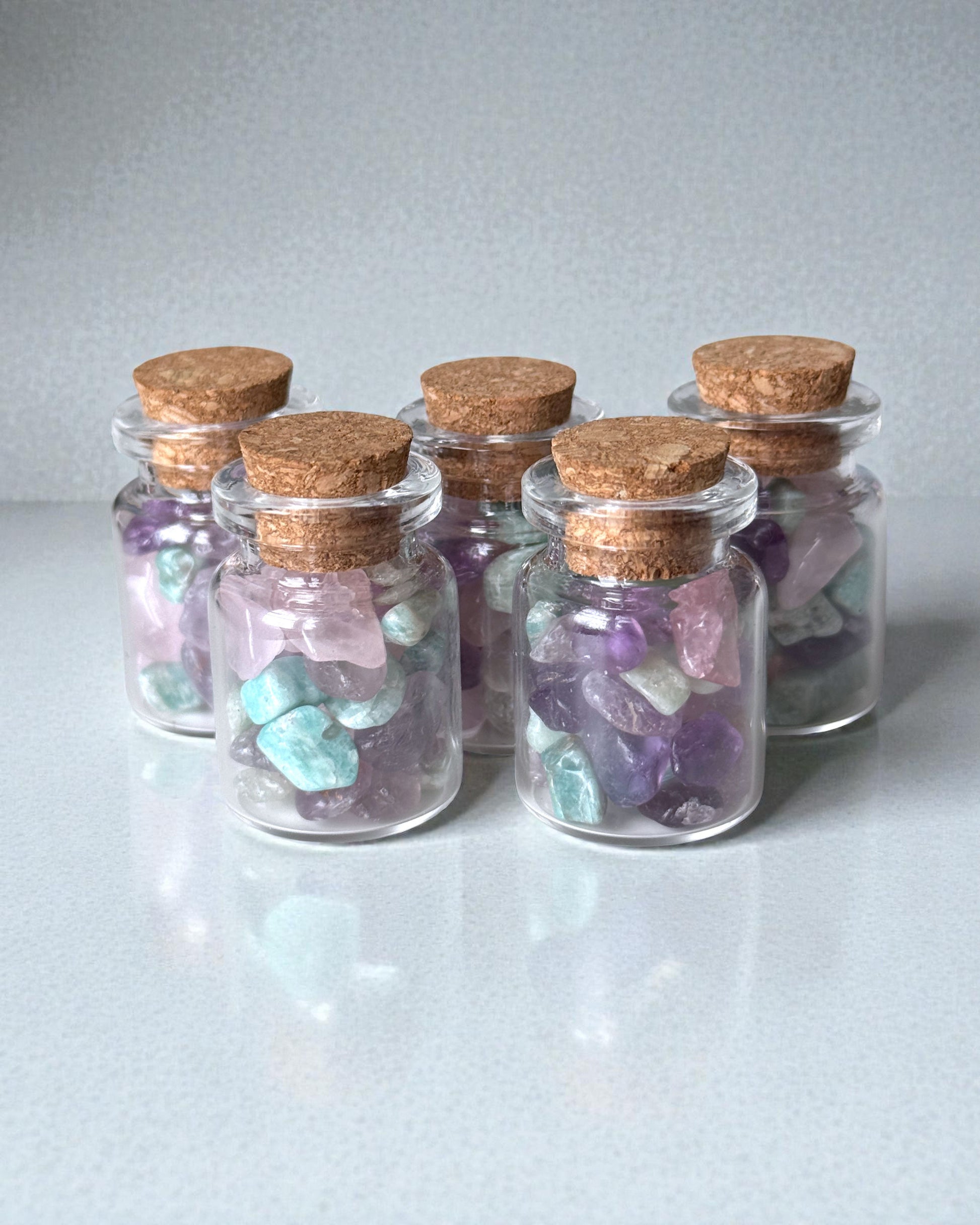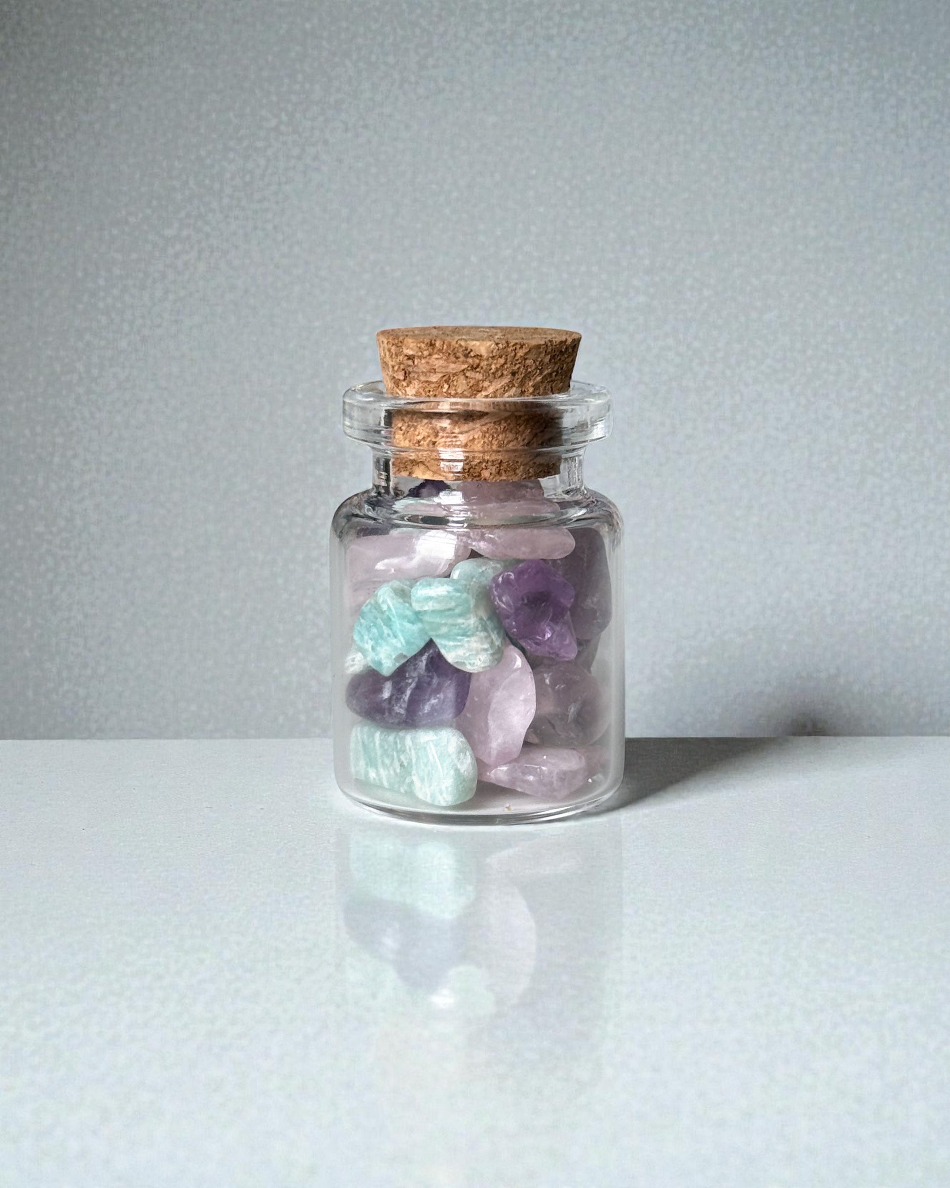 These mini jars are filled with soothing crystal chips chosen to calm the heart, quiet the mind, and restore emotional balance. Each Tranquility Crystal Jar holds gentle, peaceful energy to support moments of stress, overwhelm, or emotional healing — a tiny bottle of serenity for your everyday life.